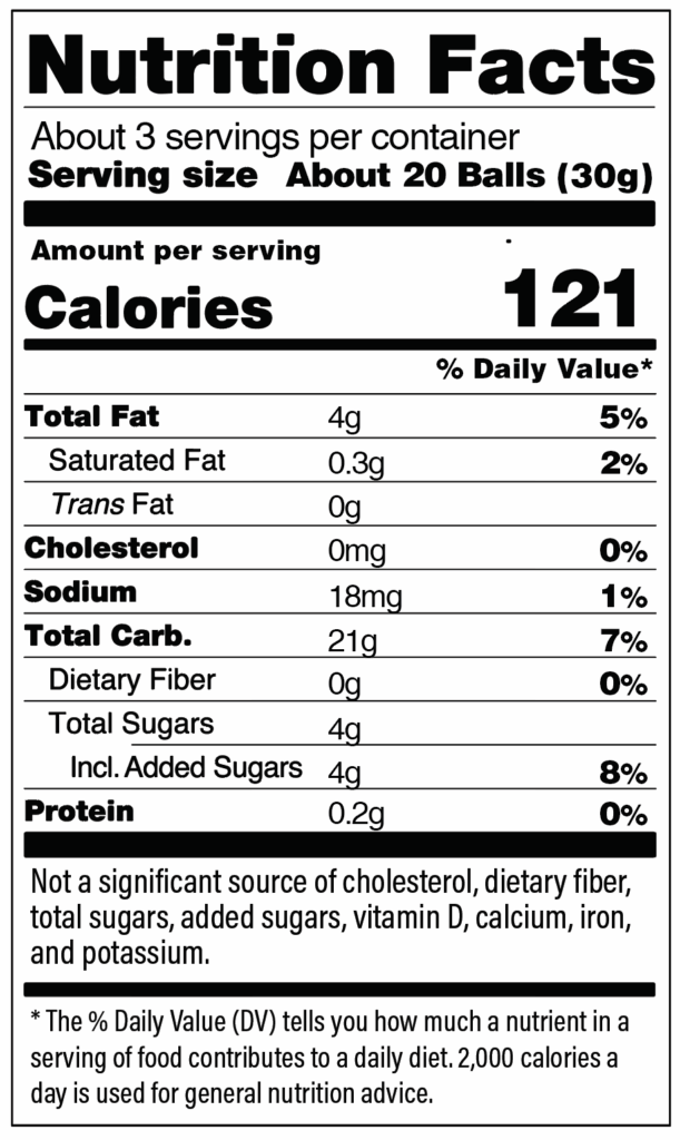 Each bite delivers a light crunch followed by a soft, milky sweetness. Made with cane sugar and whole milk, these Yuca Balls offer a perfectly balanced flavor that’s comforting, familiar, and irresistibly snackable.